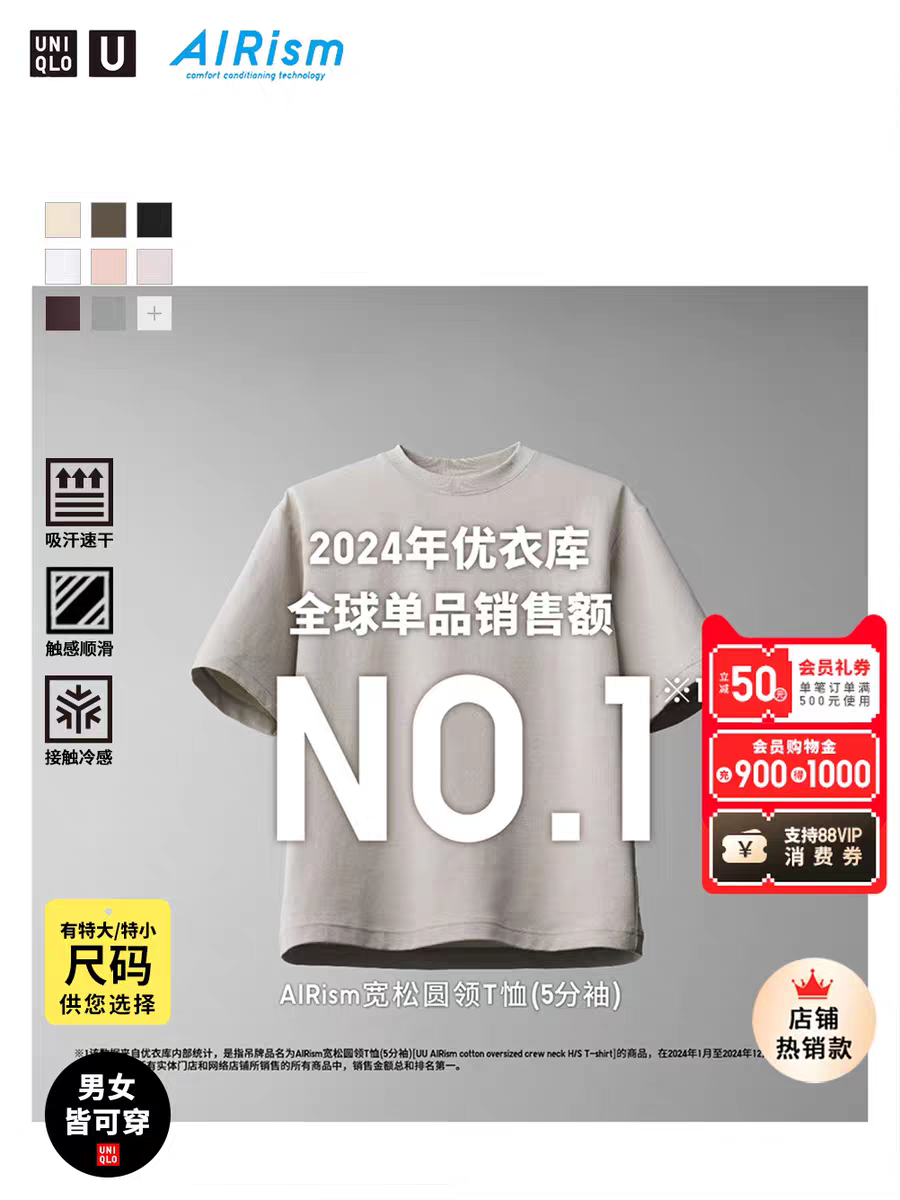 ▲优衣库AIRism面料的某款T恤至今还在热销